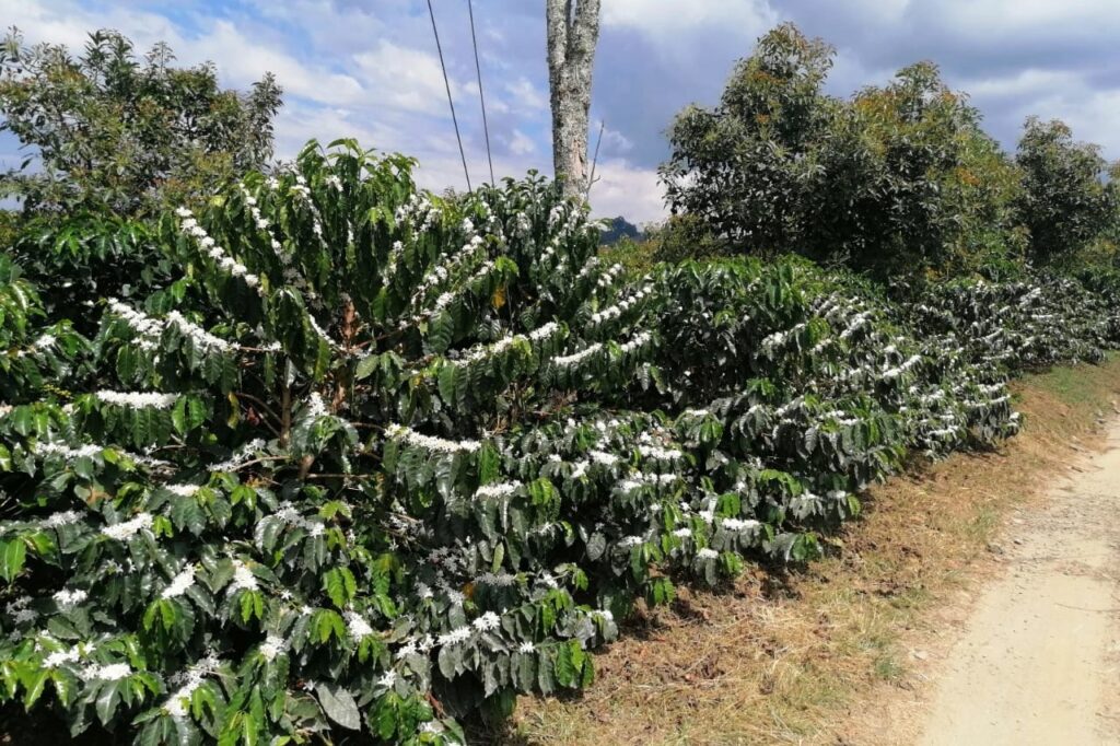 Cali, 16 de febrero de 2024.- Los cafetales en el Valle del Cauca también se vistieron de blanco, lo que significa que buenas noticias nos esperan, pues estas flores se convertirán en frutos de café.